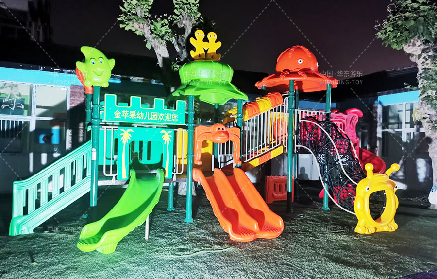 山东省济南市历城区金苹果幼儿园是一家由教育局批准的幼儿园,主要提供学前教育的服务和托管,此次学校选用的是由乐鱼游乐自主生产和研发的动物系列组合滑梯,该滑梯设置了网洞攀爬、S形滑梯、直行滑梯、爬梯等功能,独特的动物系列设计风格深受广大小朋友们的喜爱。