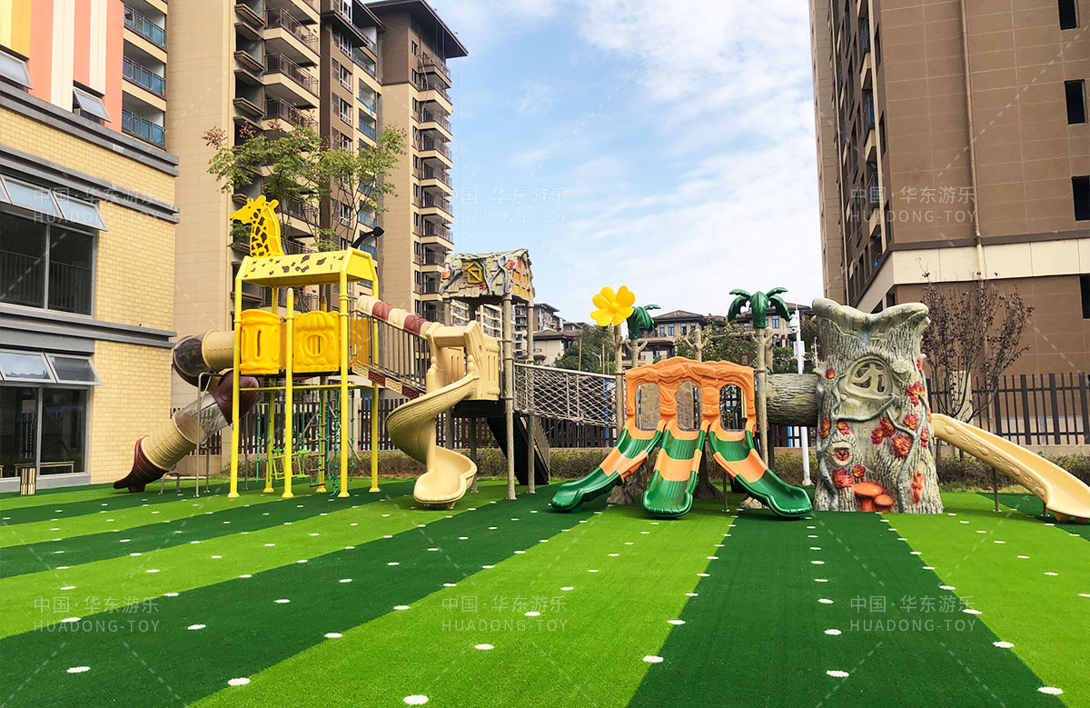 长沙市天心区教育局大唐印象幼儿园选用的是乐鱼游乐自主研发的动物系列滑梯、该滑梯具有攀爬、滑梯、钻洞、爬网、枞林攀爬等功能,能够锻炼小朋友的四肢臂力,很好的让小朋友在玩耍中健康快乐的成长。