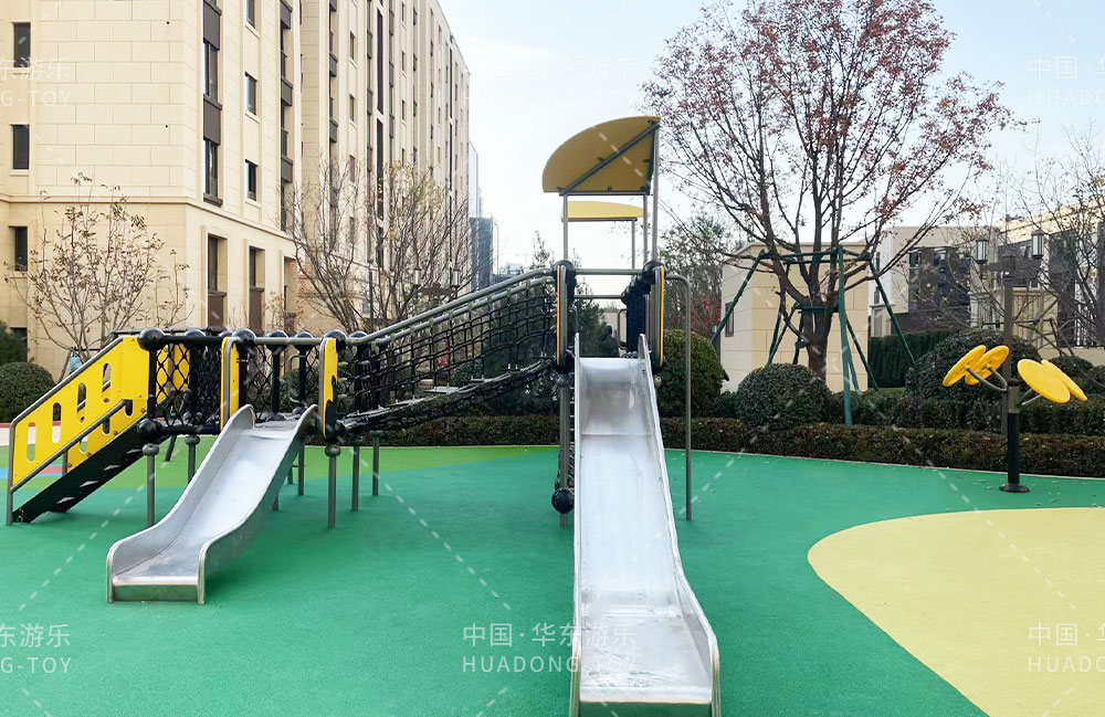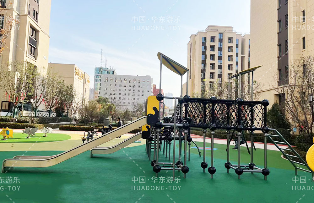 太原华润昆仑域地产项目选用的是乐鱼游乐自主研发的游乐设备,娱乐场里选用了健身器材、具备攀爬网、不锈钢滑梯为一体的综合性游乐设备,为生活在该小区的人们提供了一个生活、休闲、娱乐的场所。