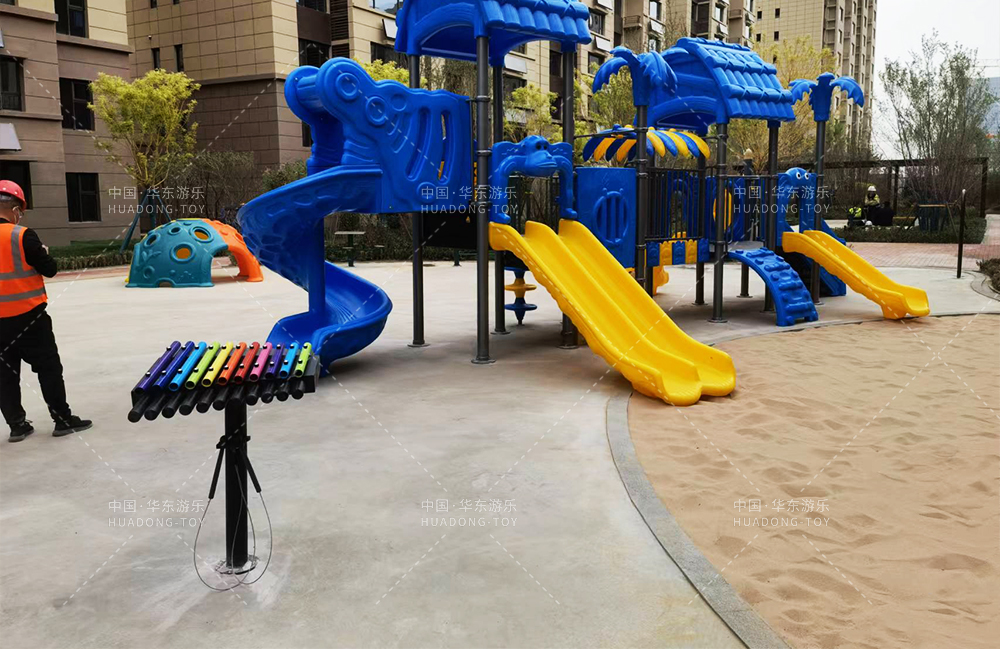 银川金凤街碧桂园地产选用的是乐鱼游乐自主研发的森林系列滑梯为主要游乐设备,整个场地设置了小朋友喜欢的摇摇乐、打击乐器、攀爬球、儿童跷跷板等游乐设备,为小朋友的健康成长提供了一个健康快乐成长的游乐场所。