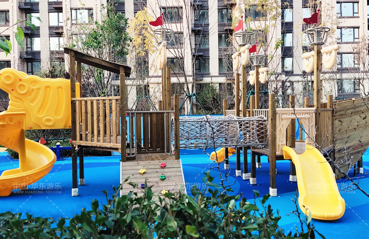 长春市昆仑御是 一个高端的住宅生活小区,该项目在健身儿童游乐园的时候采用的是乐鱼游乐自主研发和设计的木制非标定制组合滑梯,同时还配备了健身器、儿童跷跷板、摇摇乐等游乐设备,为生活在该小区的小朋友提供了一个休闲娱乐的场所。