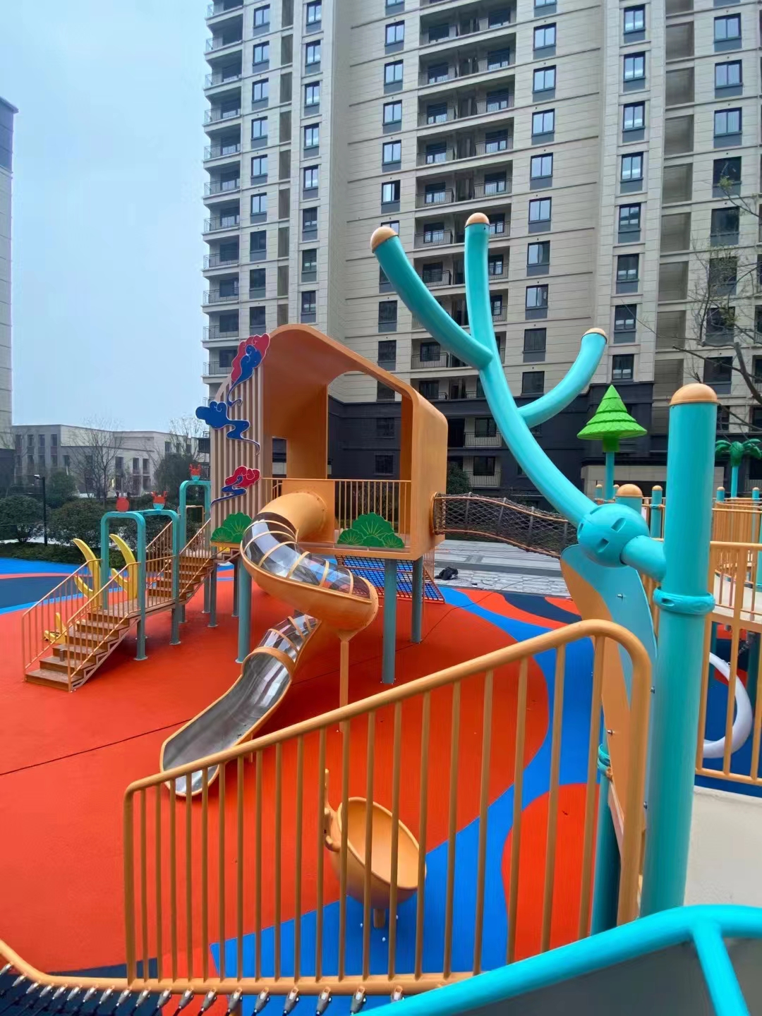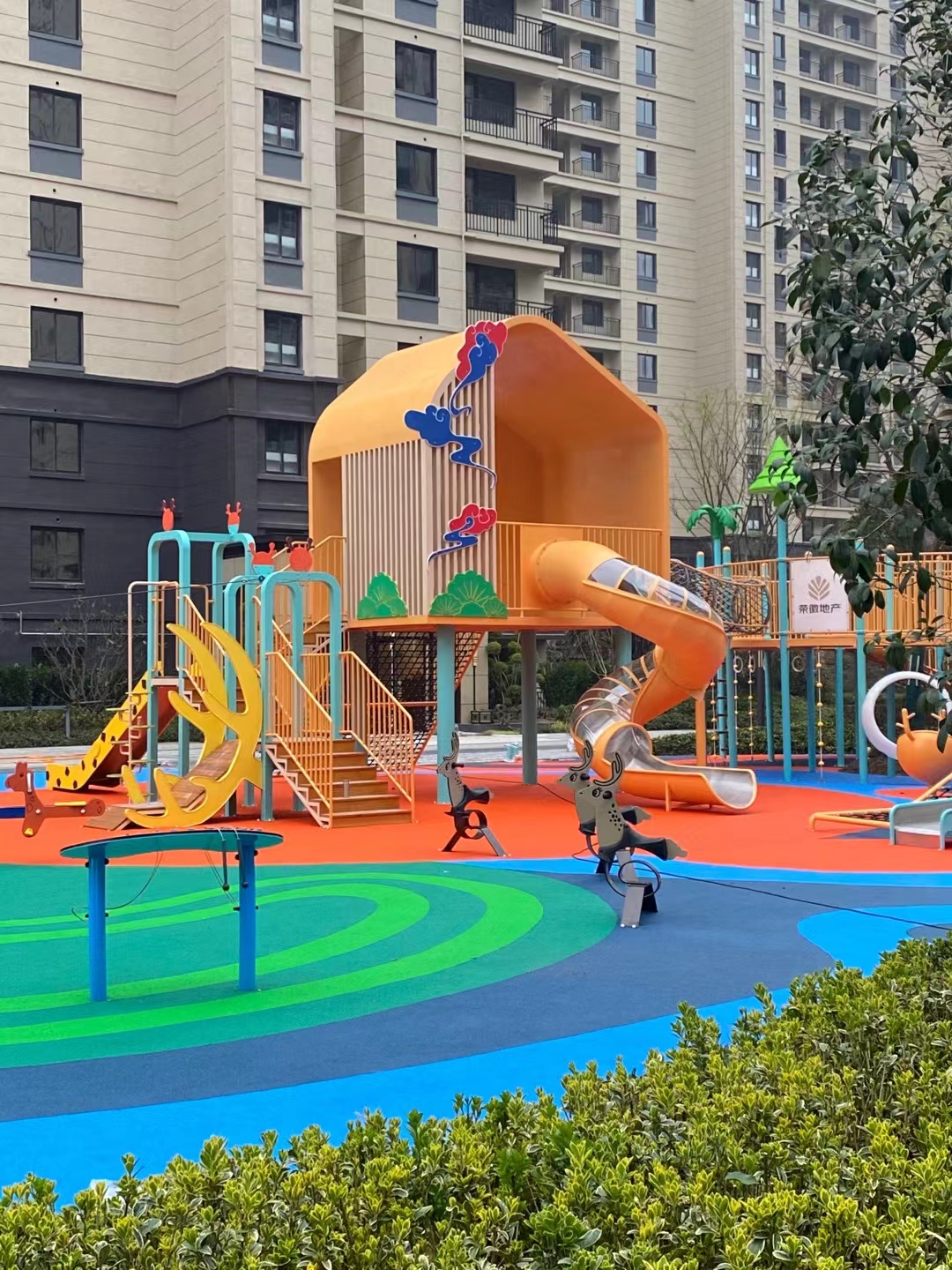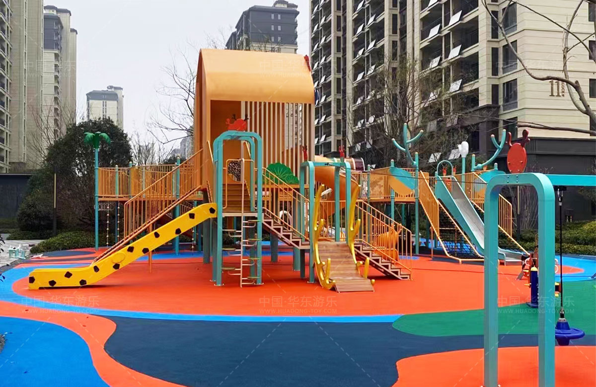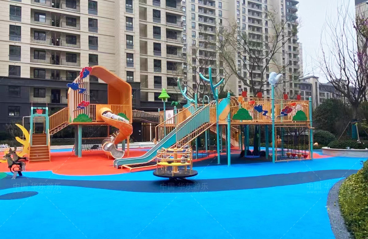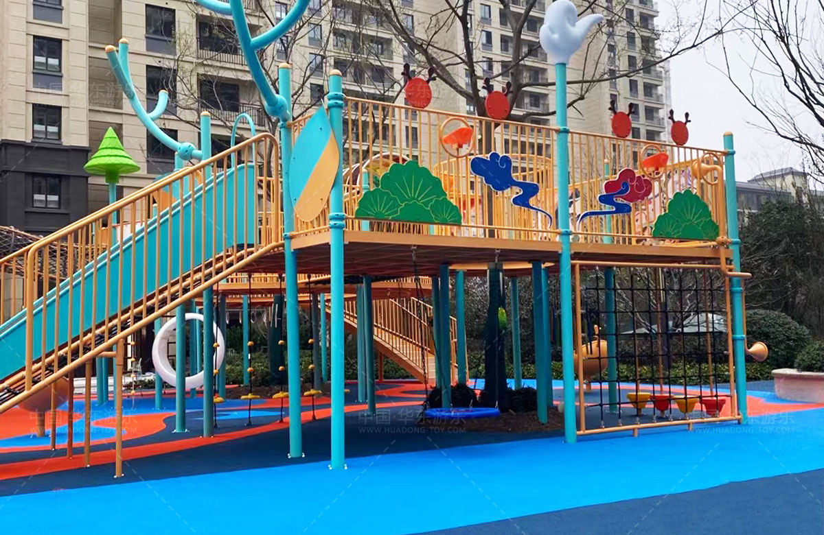 建投东方名府源著儿童游乐项目是乐鱼游乐生产的非标定制的主题性游乐设备,整个项目采用以森林麋鹿为设计主题,分别设计了攀爬网、钻洞、不锈钢滑梯、旋转椅、传声筒、秋千、脚踏平衡杆、攀爬梯等功能,为小朋友的健康成长提供了一个很好的游玩场所。