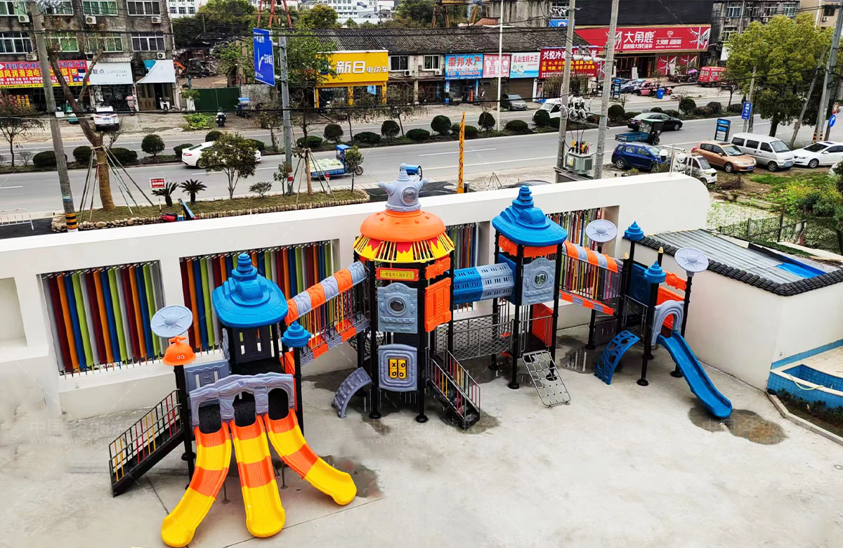 幼儿园为了更好的应对教学的和孩子们的发展需要,分别设置了由乐鱼游乐自助研发和设计的赛亚号系列组合滑梯、木质攀爬、木质拓展游乐设备,让小朋友在学习的同时能够更加愉快的玩耍。