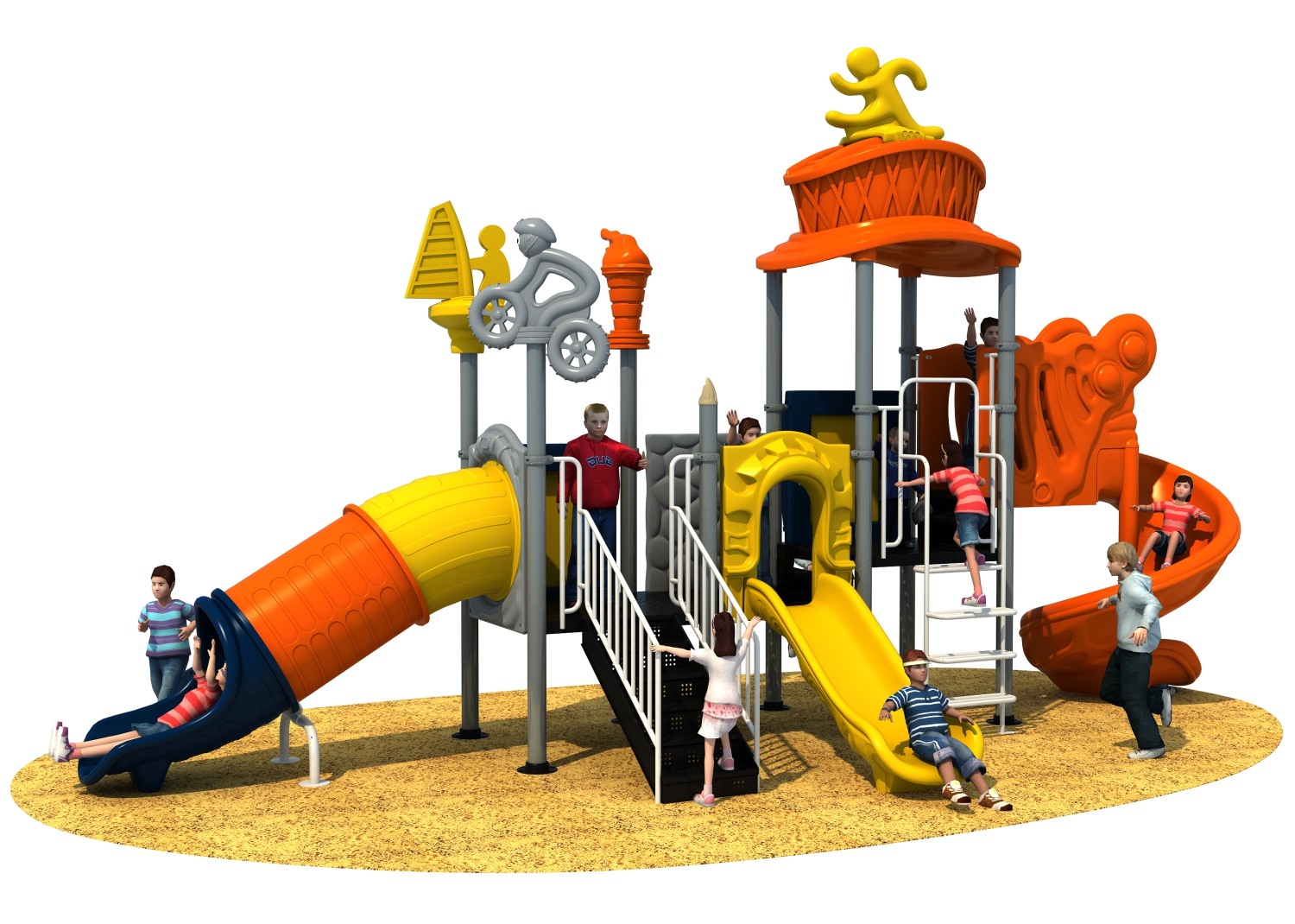 • 赛事系列游乐设备是乐鱼游乐根据常见的足球、垒篮球体育等赛事而自主研发和设计的组合滑梯,它是一款能够引导孩子们在玩耍时小朋友之间应该互相帮助、相互鼓励的无动力游乐器械,也是一个具备教导孩子们学会通过自己的努力取得最终胜利而敢于拼搏和挑战的游乐设备,卡通的造型、生动的形象让小朋友在玩耍的过程中有一个愉快的童年。