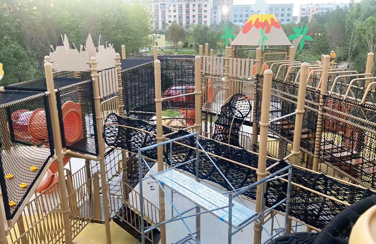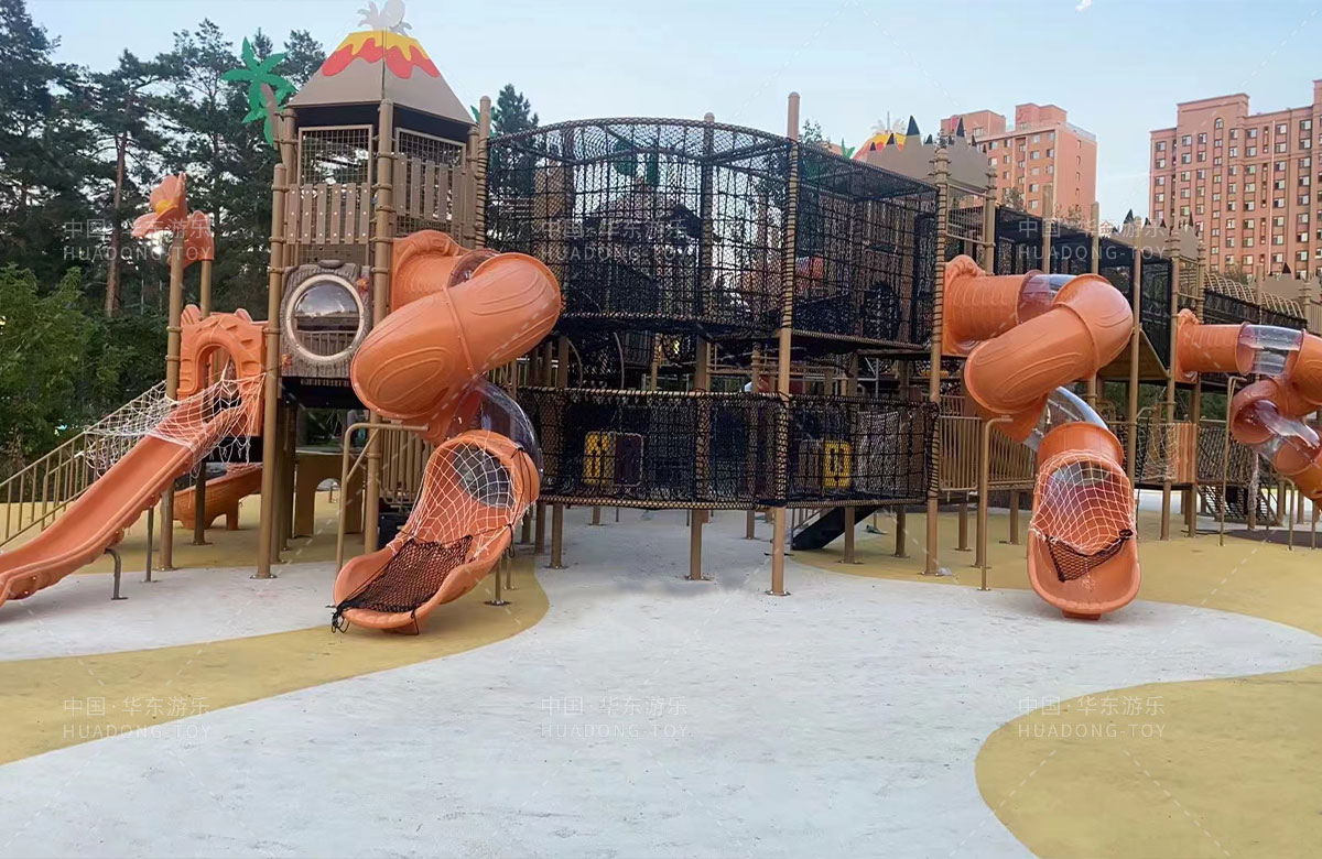 吉林省白城市洮北区兵器城北门公园是一个综合性市政公园,此次选用的是乐鱼游乐自主研发和设计的个性化定制系列的组合滑梯,该滑梯具有功能齐全、玩法多少、颜色艳丽、使用寿命长等特点,深受孩子们的喜爱。