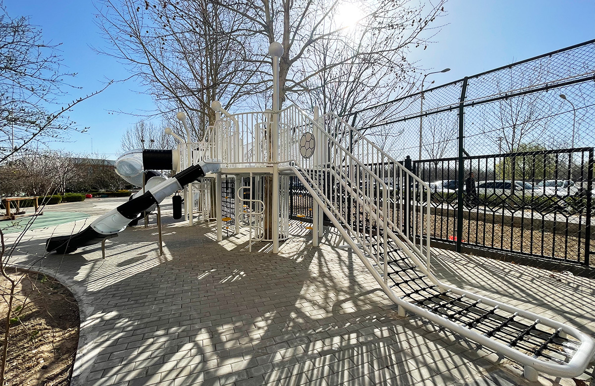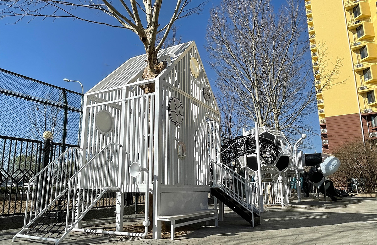 • 北京市朝花幼儿园是一个高端的学期教育学校,为了更好的让孩子们有一个玩耍的场所,整个游乐场选用了由乐鱼游乐自主研发和设计的非标定制系列的游乐设备,该游乐设备采用森林小屋和足球主题相互结合的方式进行设计,让整个校园充满了生机与活力,同时也为老师的教学提供了一个很好的场所。